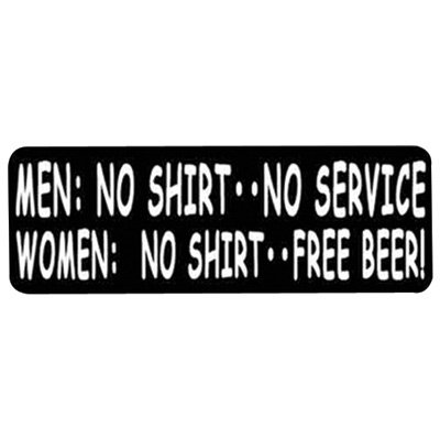 Hot Leathers Helmet Sticker - "Men: No Shirt - No Service, Women: No Shirt - Free Beer!" 4" x 1" Overviews
